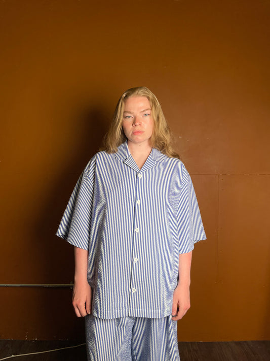 Blue striped short-sleeve shirt